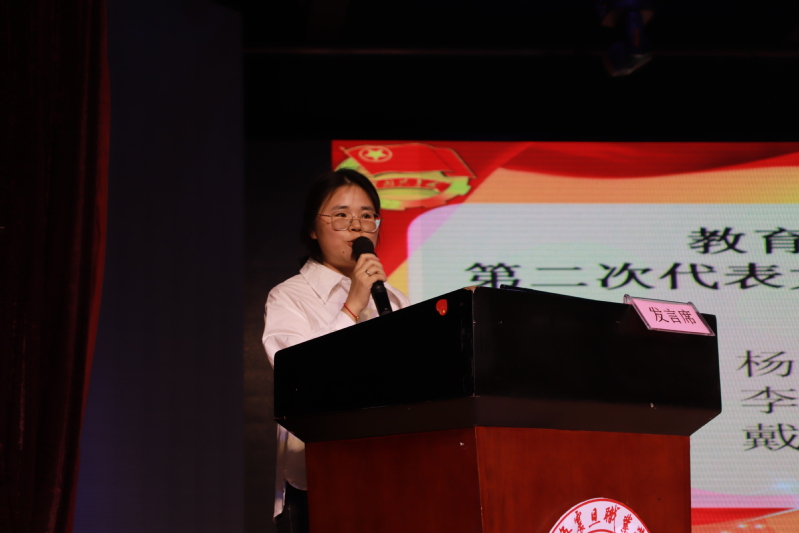 大会在国歌歌声中缓缓拉开序幕,李婧老师向团员代表作第一届委员会工作报告。她带领团员代表们一起回顾了第一届委员会的工作内容,着重讲述了疫情期间学院教育管理、志愿者活动、捐款活动和团员心向党等团学工作,并结合学院特色阐述了未来教育学院团总支的发展方向。