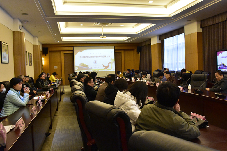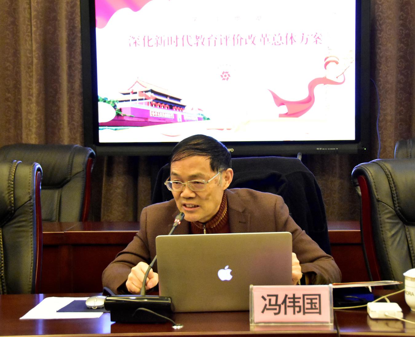 12月14日下午,为深入贯彻落实习总书记关于教育的重要论述和全国教育大会精神,落实立德树人根本任务,我校在体艺楼国际会议中心召开中心组专题学习会,校领导、全体中层干部参会。会议由冯伟国校长主持。 冯伟国校长传达了中共中央、国务院印发《深化新时代教育评价改革总体方案》精神,从《总体方案》总体要求、重点任务、组织实施三个方面介绍了主要内容。《总体方案》坚持以立德树人为主线,以破“五唯”为导向,以五类主体为抓手。全体中层干部要以新时代中国特色社会主义思想为指导,切实学习贯彻《总体方案》精神。各部门、二级学院要认真展开讨论,推进教育评价改革。 |