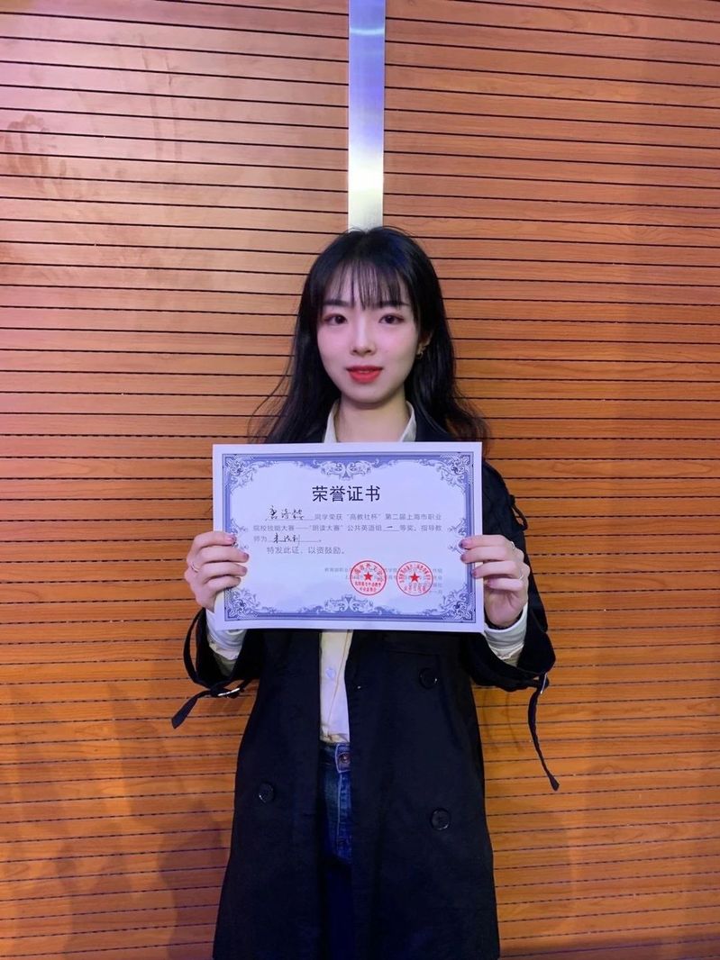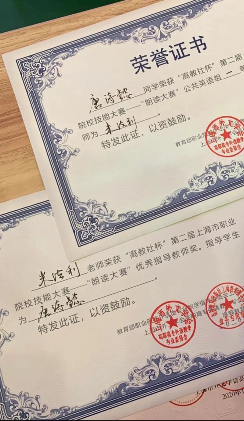 决赛当天,唐诗懿凭借自身优秀的英语口语水平和稳定的发挥,最终获得大赛一等奖。基础部米法利老师获得优秀指导老师奖。