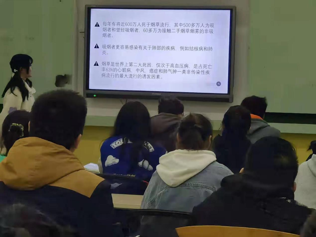 20级物联网应用技术1班从烟民现状入手,谈吸烟人数之广、危害之大;深入分析了青少年吸烟的心理,各位同学积极讨论“青少年该如何抵抗烟草诱惑”等问题。