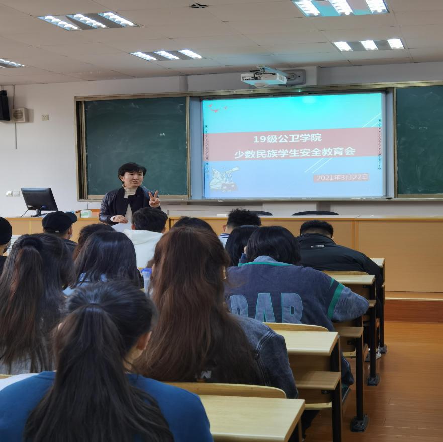 2021年3月23日下午,公共卫生与护理学院邀请学校内派教师巴了黑娅、迪拉娜为学院19级、20级少数民族学生开展了思想安全教育座谈会。学院党总支书记王文华、各班级辅导员以及少数民族同学参加了座谈会。 会上,迪老师强调安全稳定的重要性,提醒同学们要提高思想认识,严格遵守学校相关规章制度,加强心理建设,珍惜学习时光,努力学习专业知识,主动学习时事政治,关心国家的前途和命运,关注中国在国际社会中的地位和作用,维护国家利益,发扬爱国主义精神。