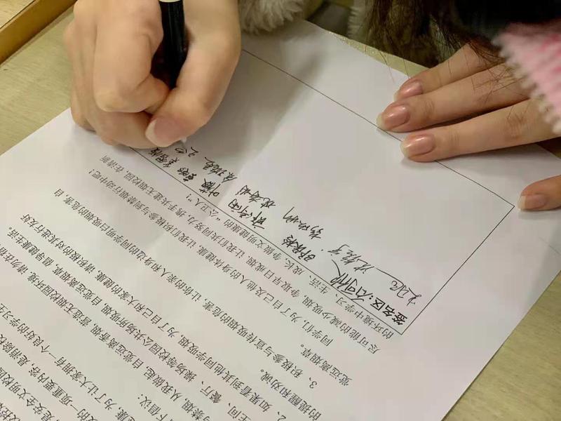 会后,学生代表带领全体同学宣誓禁烟行动口号,并签字保证。
