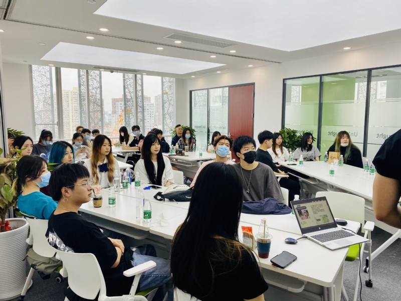 本次活动由王琴老师带队,在北京优诺公司创意总监金雷先生、资深HR韩艳玲女士的带领下,学生们参观了公司的办公场所、休闲区域以及健身区域,近距离亲身感受了企业文化的氛围。