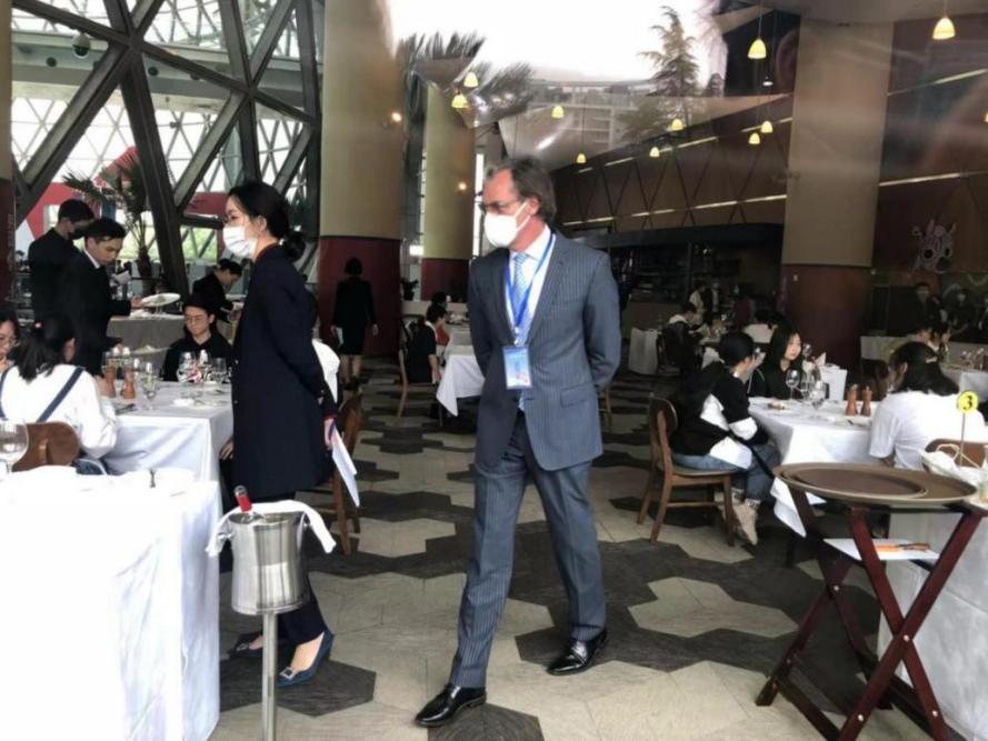 图为本次大赛评委在巡视比赛