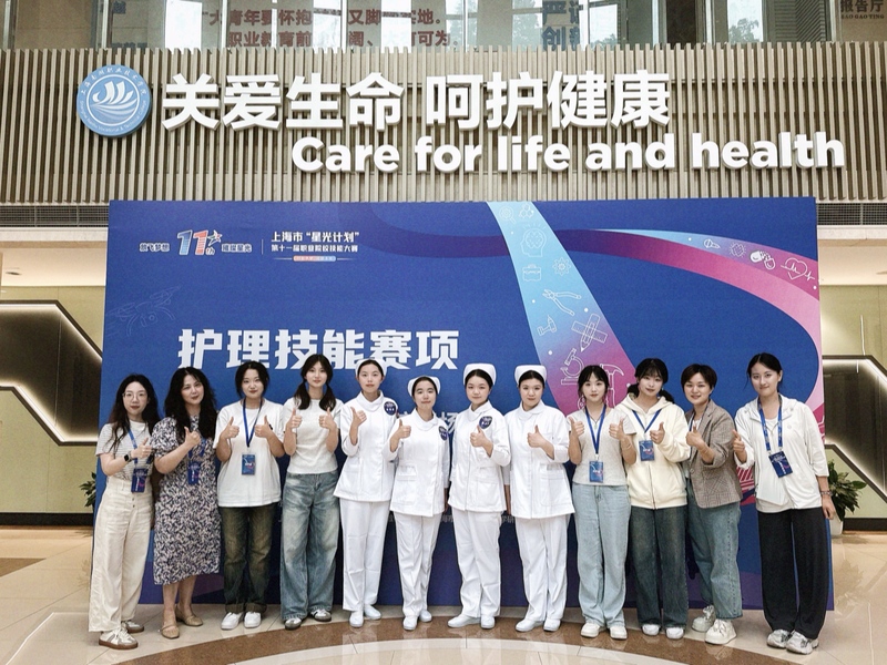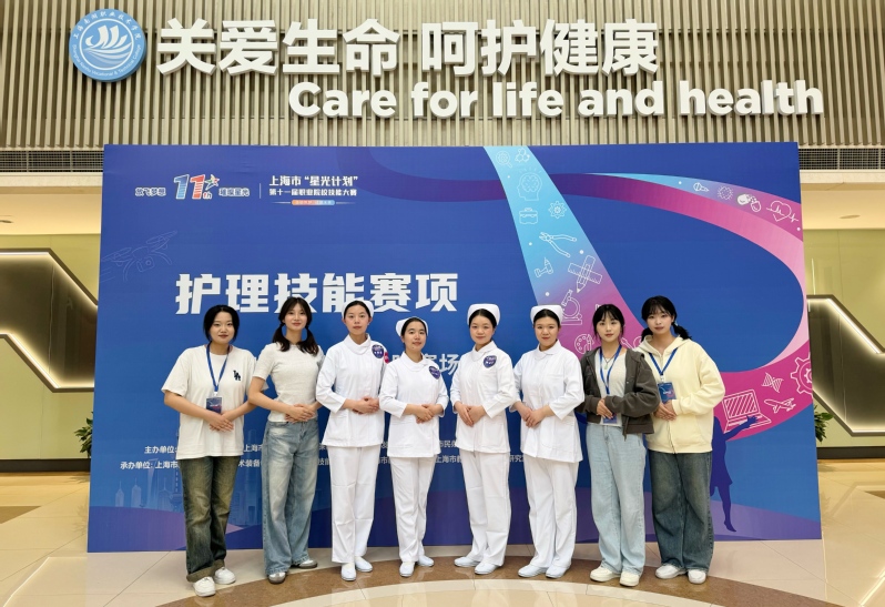 第十一届上海市星光计划职业院校护理技能赛项中,我校公共卫生与护理学院黄欢、曹婷、易芮、窦泽超四位教师指导23级学生袁佳瑶与丁嘉懿(A组)、张琪与段莉(B组)组成双战队参赛,朱彤、陈炫辰、曹雨桐、孙凯荧等四位同学担任标准化病人(SP),最终,A组、B组两队均获得上海市三等奖。