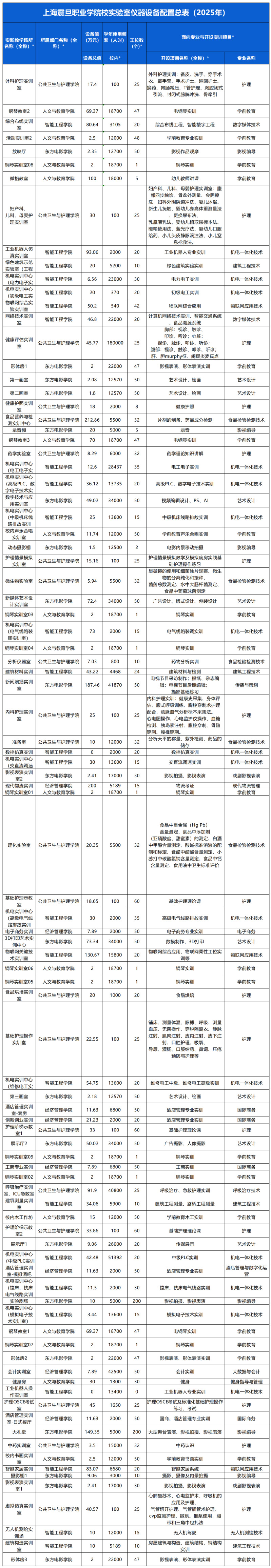 上海震旦职业学院校实验室仪器设备配置总表(2025年)
