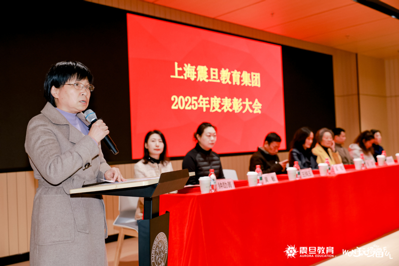 震旦教育集团董事长张沈作总结讲话。她向全体获奖集体与个人表示热烈祝贺,向辛勤耕耘在各条战线的震旦同仁致以诚挚感谢。她指出,2025年集团各项事业稳步推进、成果丰硕,收获了阶段性的荣誉,离不开每一位震旦人的坚守与付出。2026年是震旦高质量发展的关键一年,全体教职工要以先进为标杆,坚守立德树人初心,秉持震旦精神,同心同向、奋勇前行,以梦为马、实干笃行,共筑震旦新辉煌。